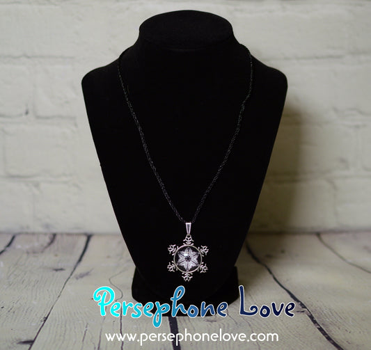 Black silver embroidered upcycled Gothic denim rhinestone bracelet lace-1167