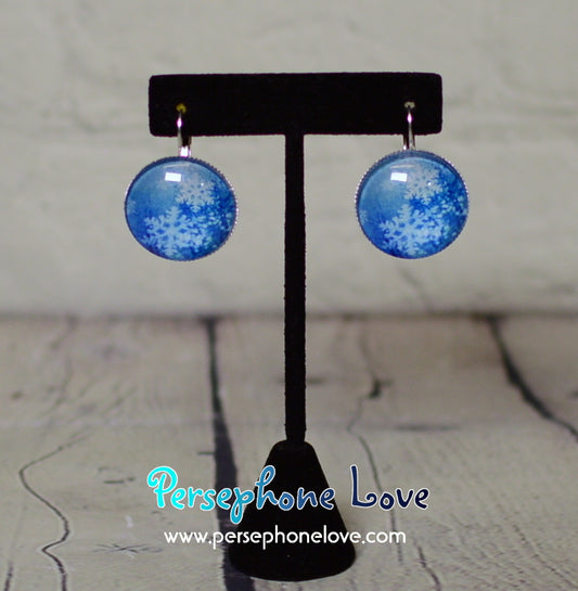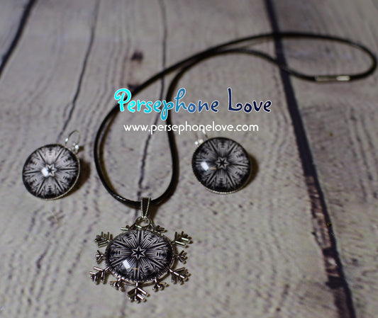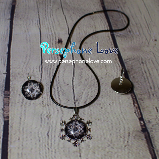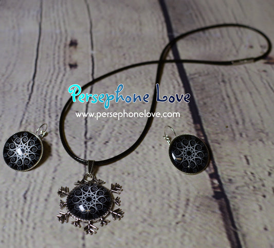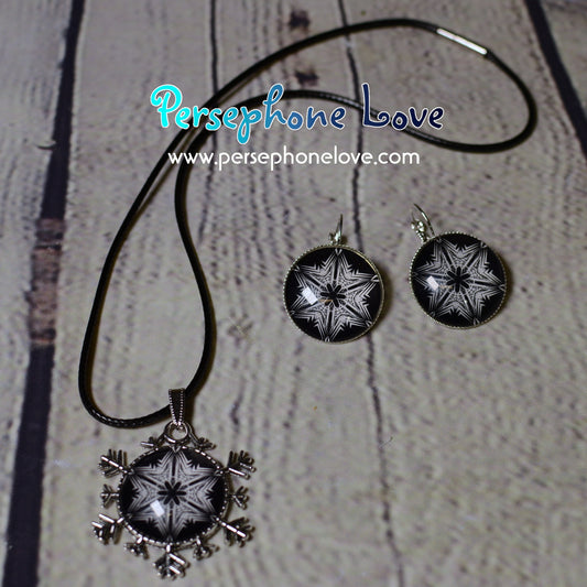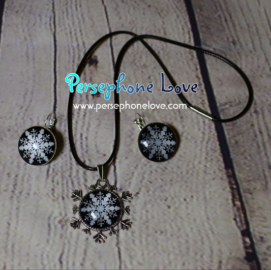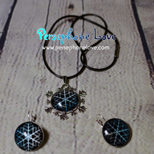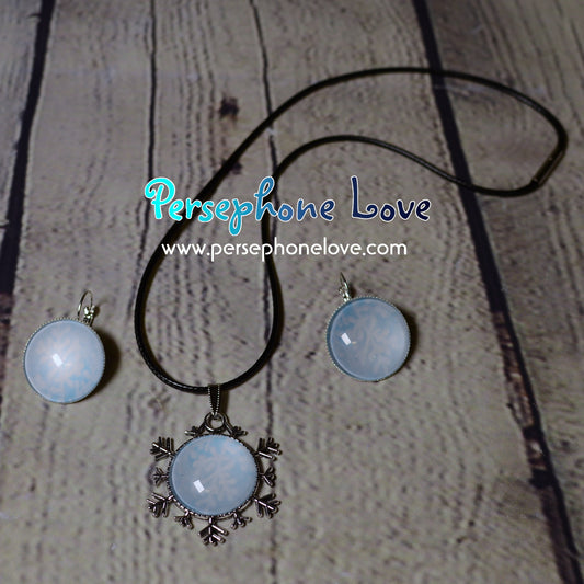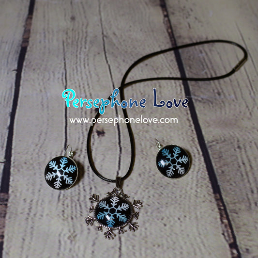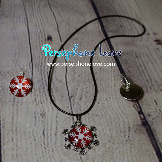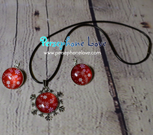 Winter holiday glass cabochon necklace earring set-1213