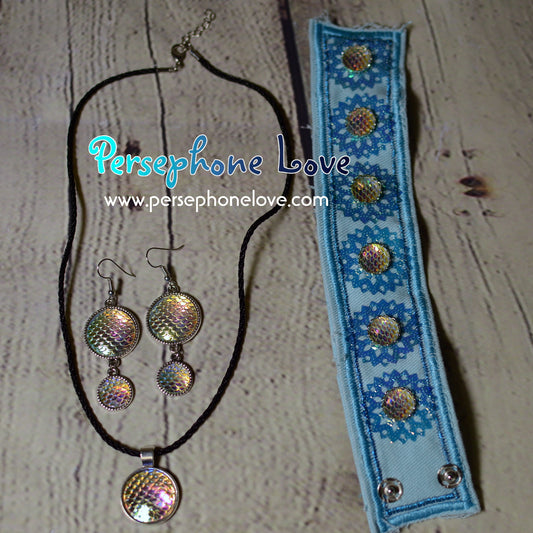 Dragon mermaid scales necklace earring bracelet set-1230