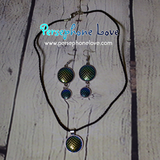Dragon mermaid scales necklace earring bracelet set-1232