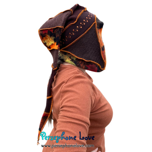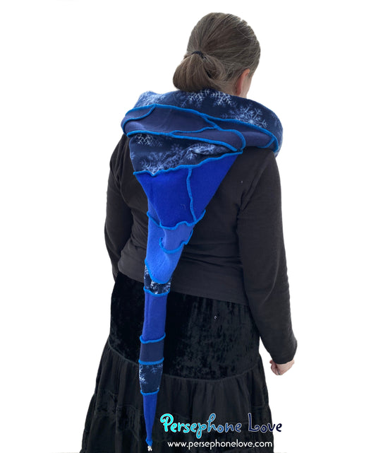 Katwise inspired blue felted 100% cashmere recycled sweater elf hat/hood-1511