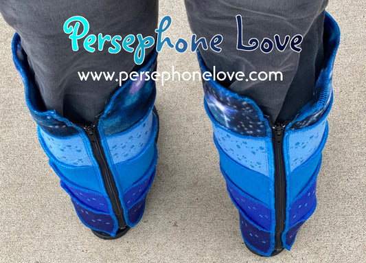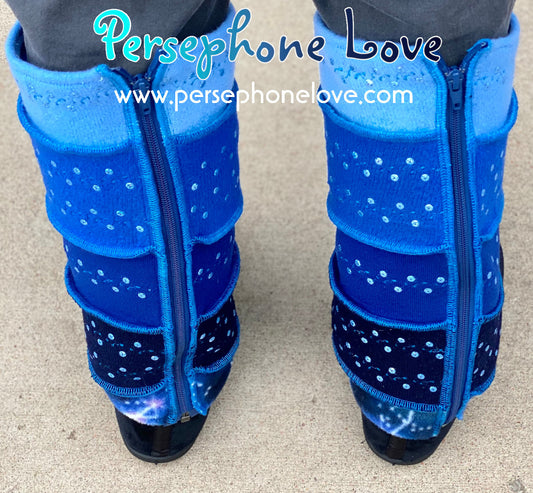 Katwise-inspired blue gradient fleece/wool embroidered sequins leg warmers-1461