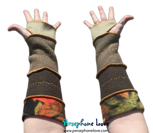 Katwise inspired needle-felted green 100% cashmere upcycled sweater arm warmers -1494