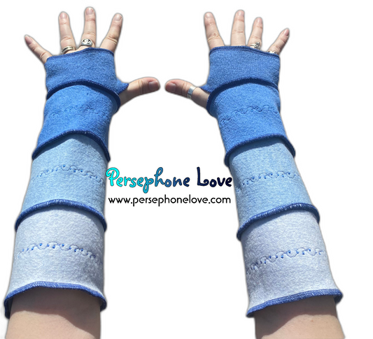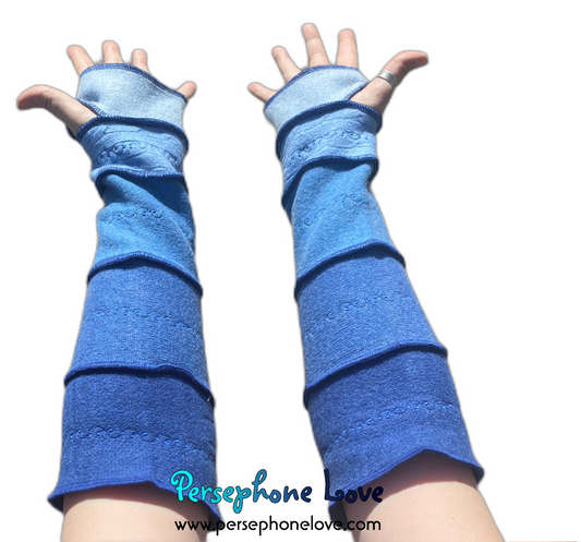 Katwise inspired needle-felted blue 100% cashmere upcycled sweater arm warmers -1505