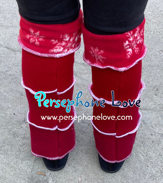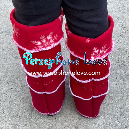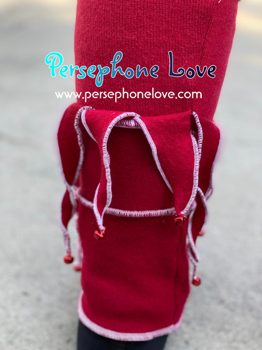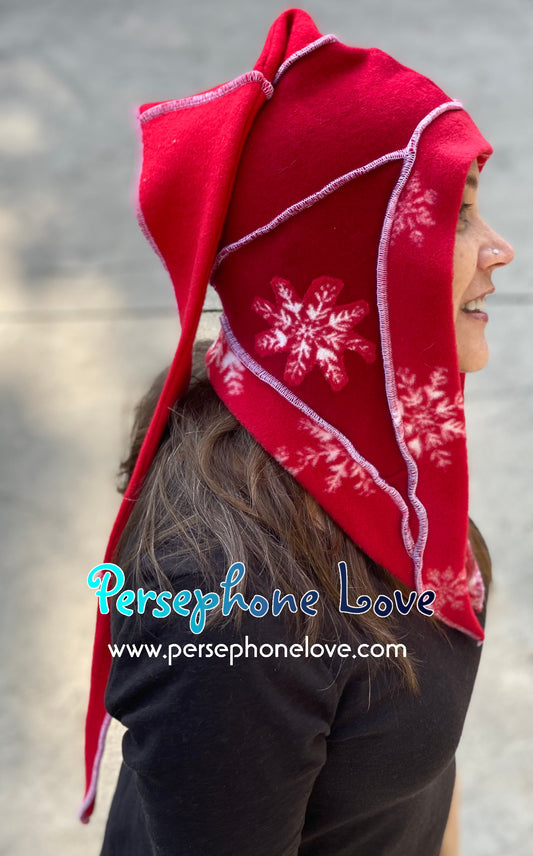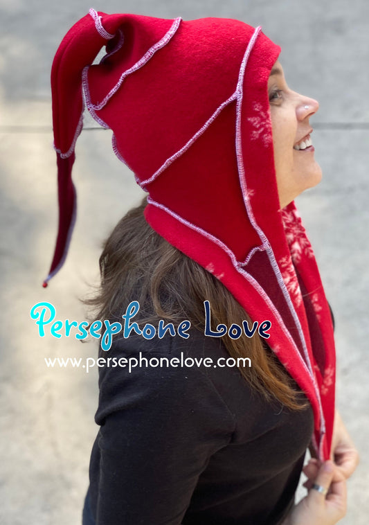 Katwise inspired red white snowflake felted merino/cashmere/fleece recycled sweater elf hat-1469