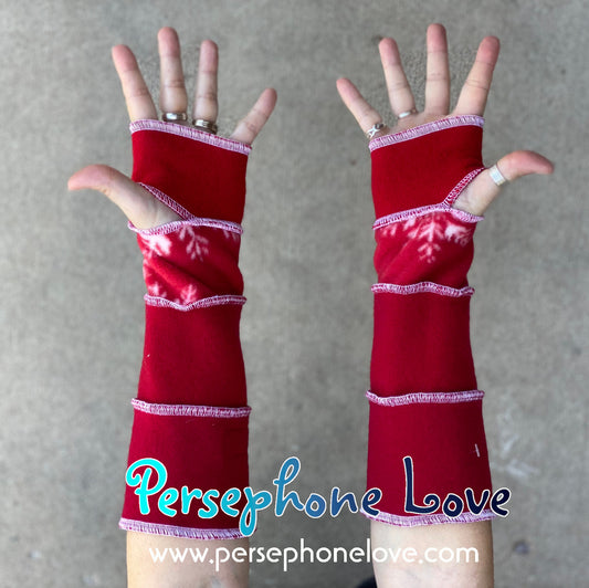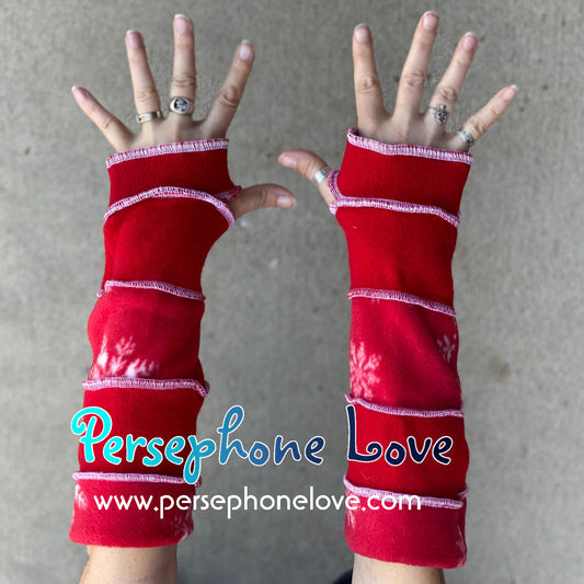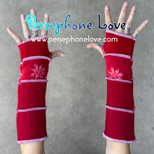 Katwise inspired needle-felted red white 100% cashmere/fleece upcycled sweater arm warmers -1466