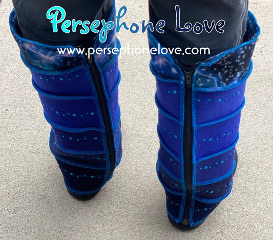 Katwise-inspired blue gradient fleece/wool embroidered sequins leg warmers-1459