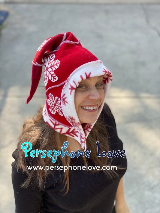 Katwise inspired red white snowflake felted 100% cashmere/fleece recycled sweater elf hat-1442