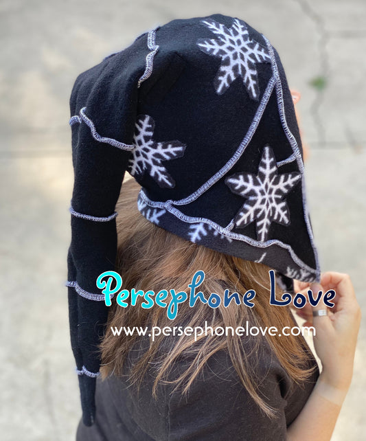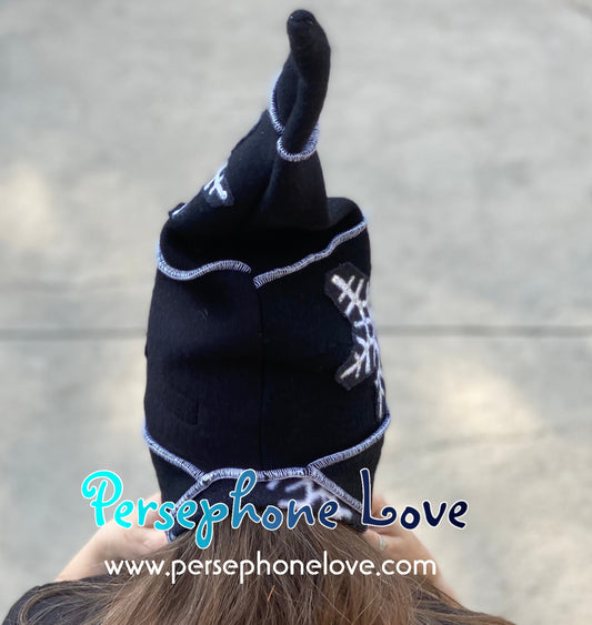 Katwise inspired black white snowflake felted 100% cashmere/fleece sequin pixie elf hat-1437