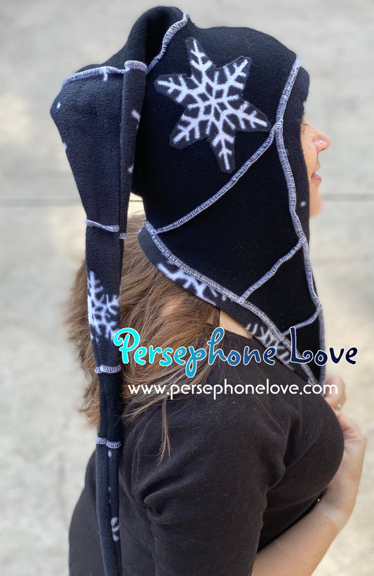 Katwise inspired black white snowflake felted 100% cashmere/fleece pixie jester hat-1436