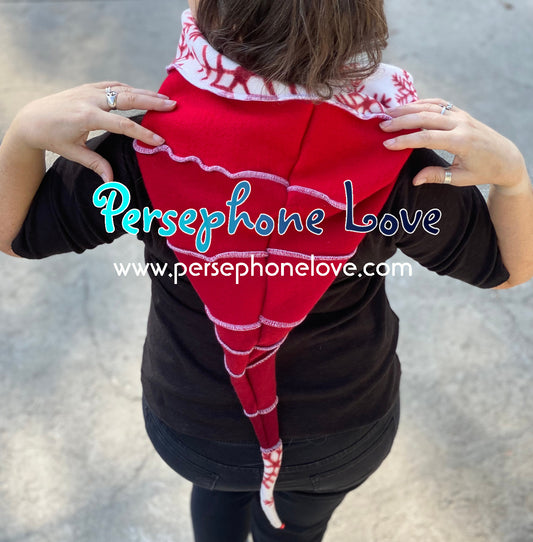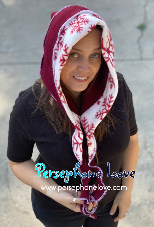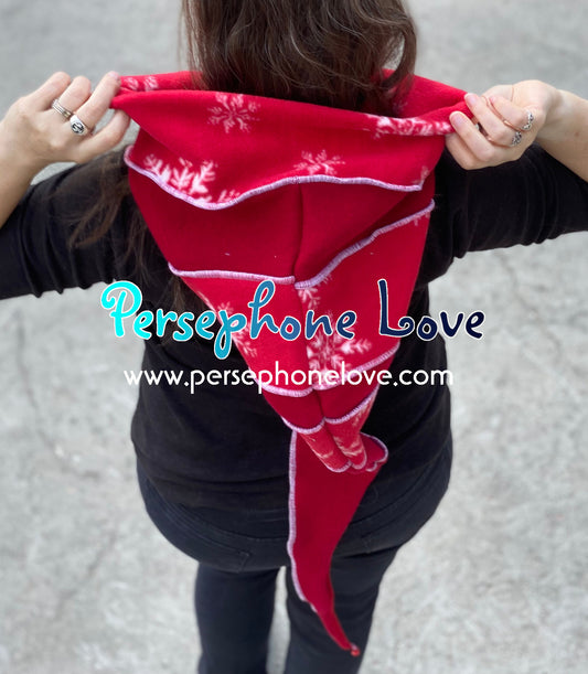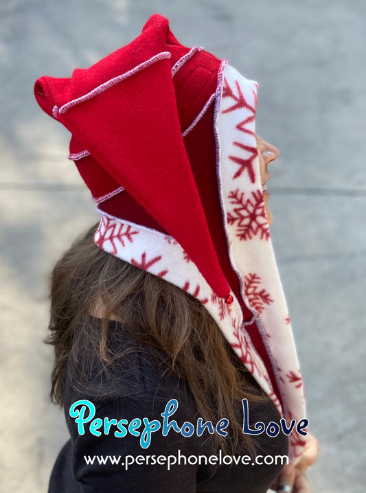 Katwise inspired red white snowflake felted 100% cashmere recycled sweater elf hat/hood-1445