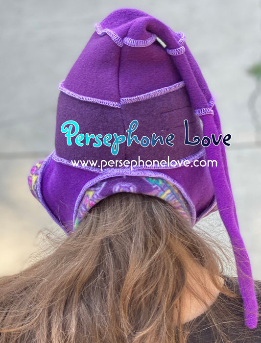 Katwise inspired purple paisley felted 100% cashmere/fleece recycled sweater elf hat-SMALL-1457