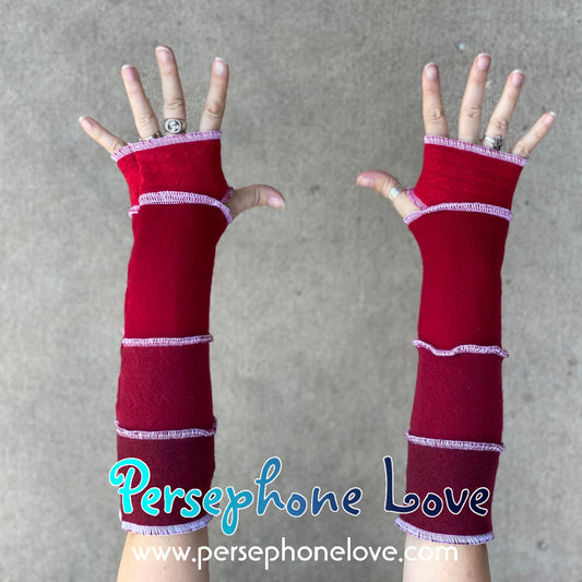 Katwise inspired needle-felted red white 100% cashmere/fleece upcycled sweater arm warmers -1430