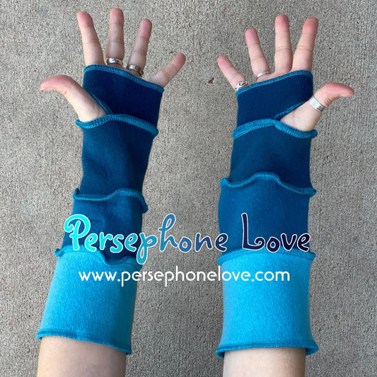 Katwise inspired needle-felted teal/turquoise 100% cashmere upcycled sweater arm warmers -1455