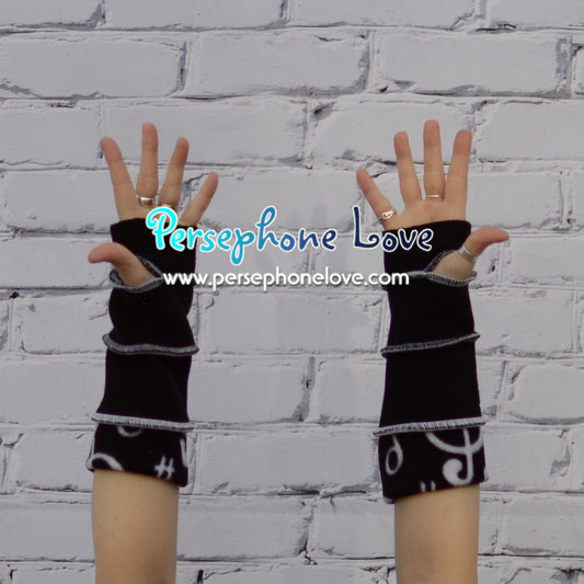 Katwise inspired needle-felted black white music opera upcycled sweater arm warmers-1337