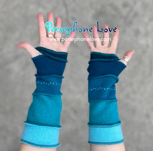 Katwise inspired needle-felted embroidered teal blue upcycled sweater arm warmers-1362