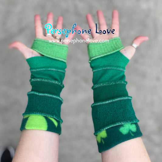 Katwise inspired needle-felted green shamrock upcycled sweater arm warmers-1372