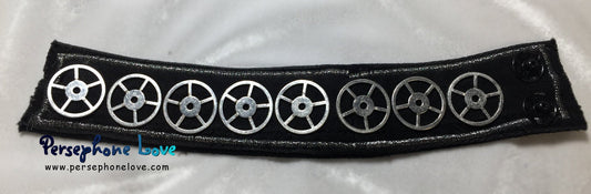 Black silver gear steampunk biker industrial upcycled denim bracelet-1203