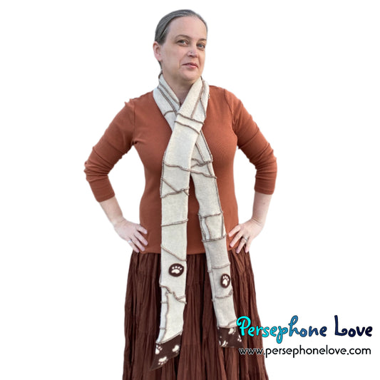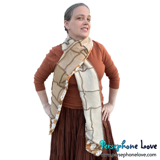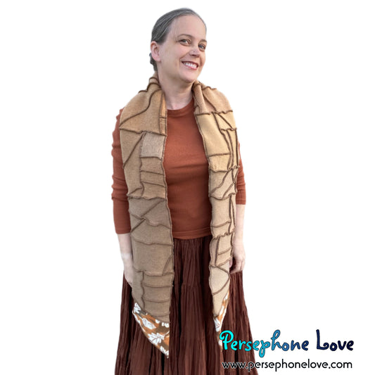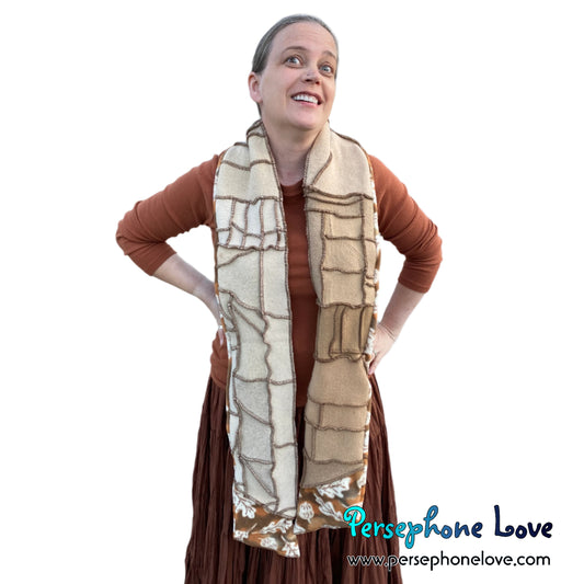 Patchwork beige 100% cashmere upcycled needle-felted sweater scarf -1711
