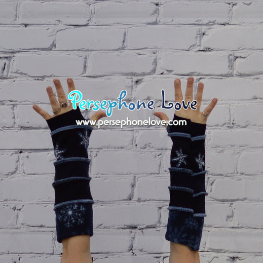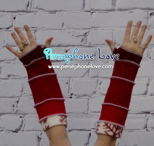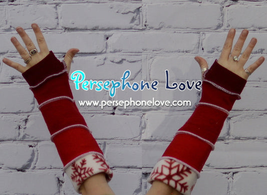 Katwise inspired needle-felted red snowflake Christmas theme wool upcycled sweater arm warmers-1314