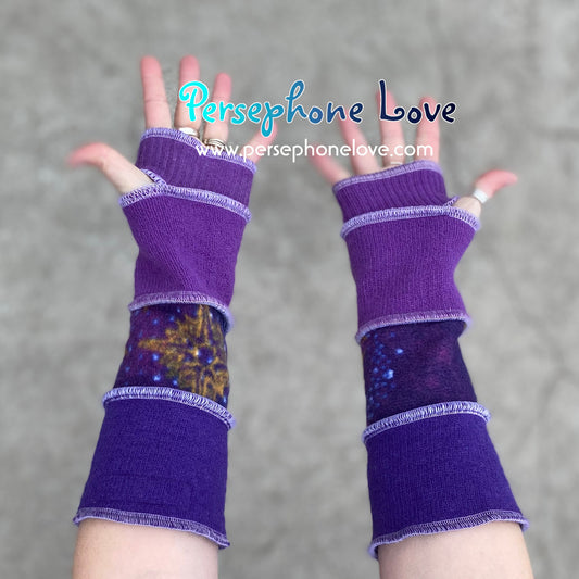 Katwise inspired needle-felted purple 100% cashmere upcycled sweater arm warmers -1423