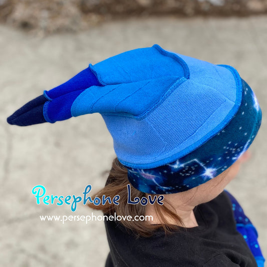 Katwise-inspired blue felted galaxy pixie recycled patchwork sweater elf hat-1384