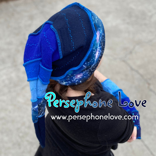 Katwise inspired blue gradient felted embroidered galaxy recycled sweater elf hat - larger size -1388