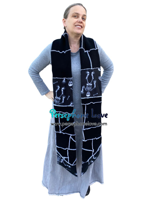 Patchwork black 100% cashmere upcycled needle-felted sweater scarf -1787
