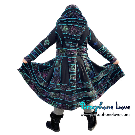GODDESS SIZE Black Zodiac felted cashmere patchwork sweatercoat-2524