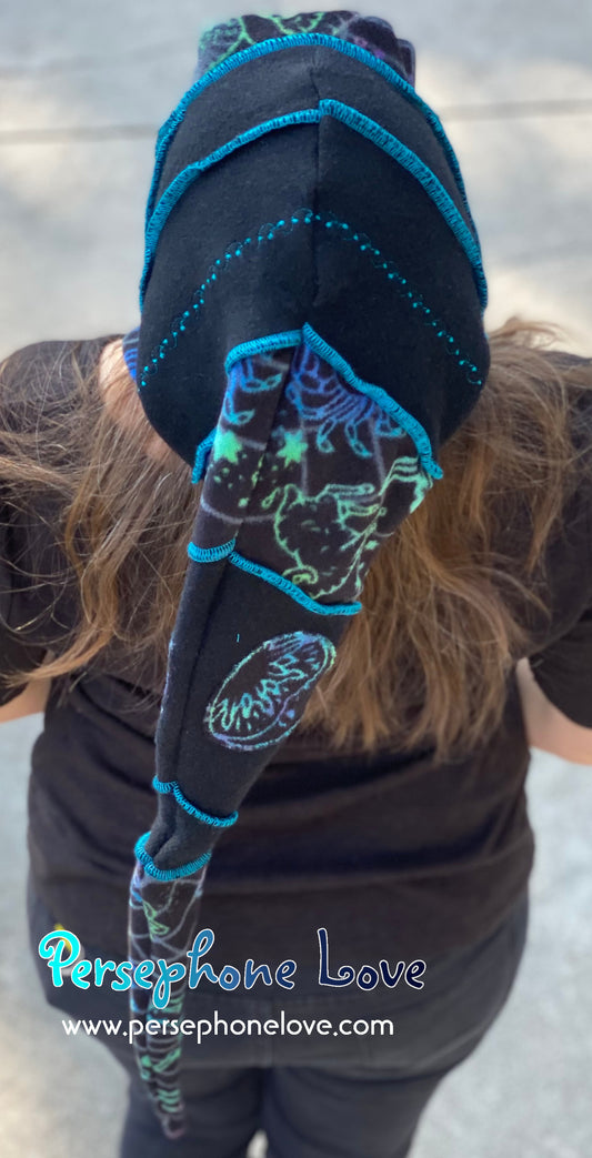 Katwise inspired black zodiac felted 100% cashmere embroidered pixie jester hat-1435