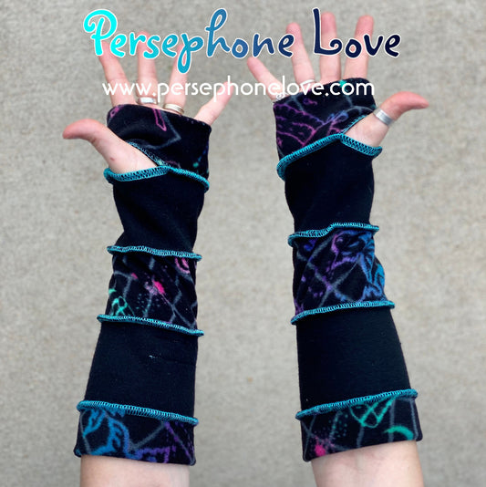 Katwise inspired needle-felted black cosmic Zodiac 100% cashmere upcycled sweater arm warmers-1402