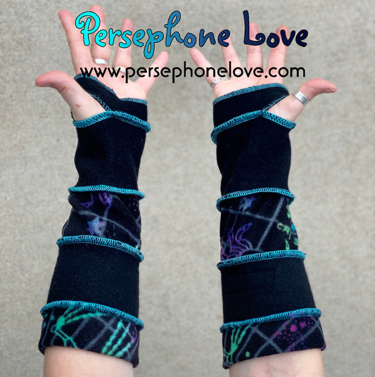 Katwise inspired needle-felted black cosmic Zodiac 100% cashmere upcycled sweater arm warmers-1403