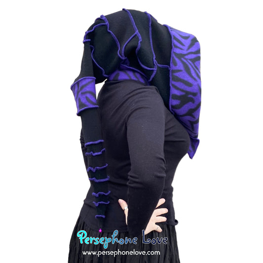 Katwise inspired black/purple felted 100% cashmere recycled sweater elf hat/hood-1663