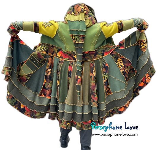 "Fae Propaganda" GODDESS SIZE green embroidered/felted/sequins cashmere patchwork Katwise-inspired sweatercoat-2545