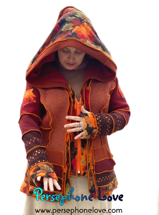 "Embers" GODDESS SIZE Katwise-inspired orange embroidered/felted/sequins cashmere patchwork sweatercoat-2546