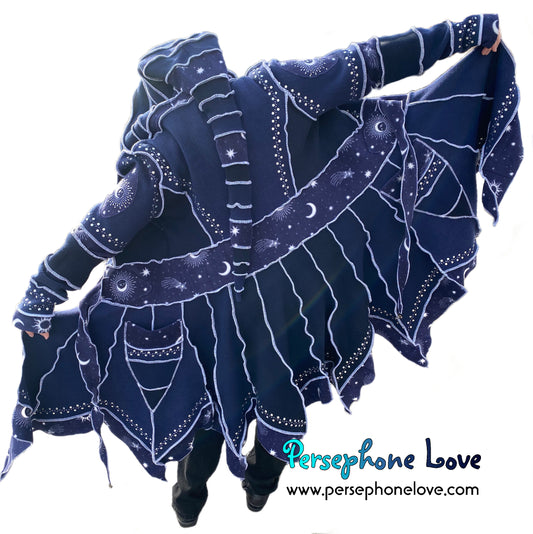 "Hypnotize" Blue celestial pixie felted cashmere/wool/fleece Katwise-inspired sequin sweatercoat-2564