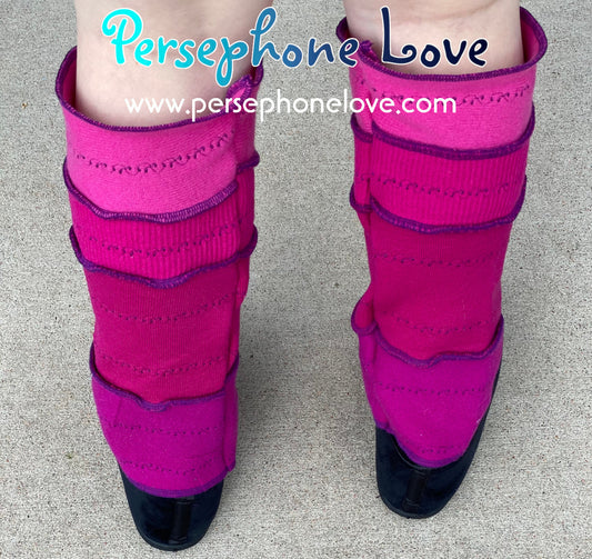 Katwise-inspired pink gradient 100% felted embroidered cashmere leg warmers-1463