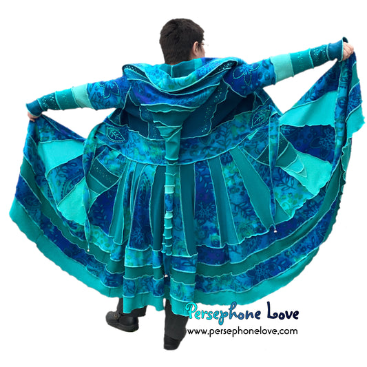 "Underwater" GODDESS SIZE Teal embroidered/felted/sequins cashmere patchwork Katwise-inspired sweatercoat-2542