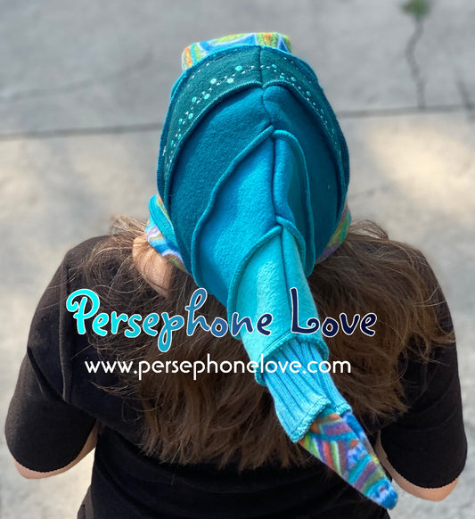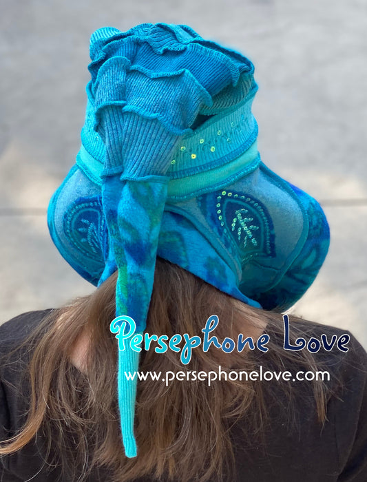 Katwise inspired teal felted 100% cashmere recycled patchwork sweater jester hat-1433
