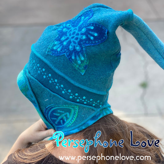 Katwise inspired teal felted paisley wool/cashmere pixie sequin jester hat-1431
