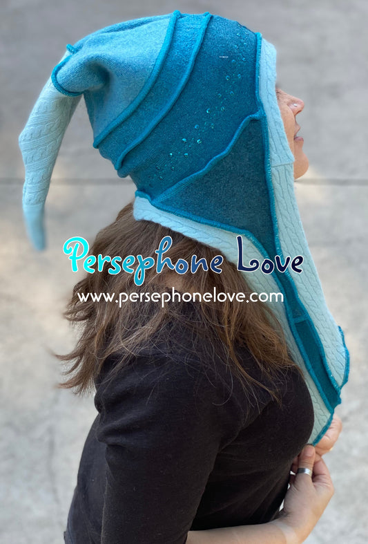 Katwise inspired teal felted 100% cashmere sequins pixie jester hat-1434