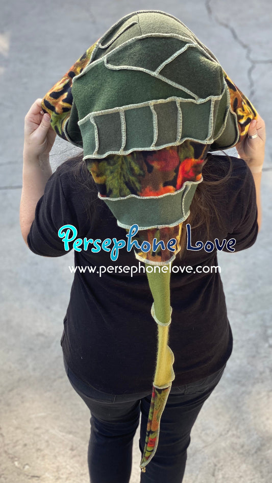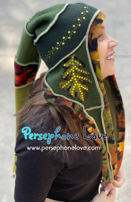 Katwise inspired green felted 100% cashmere recycled sweater elf hat/hood-1477