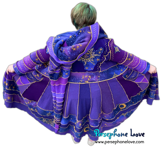 "Everything At Your Feet" GODDESS SIZE Purple Celestial embroidered/felted/sequins cashmere patchwork Katwise-inspired sweatercoat-2537