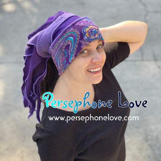 Katwise inspired purple paisley felted 100% cashmere/fleece recycled sweater dreadlock hat-1458