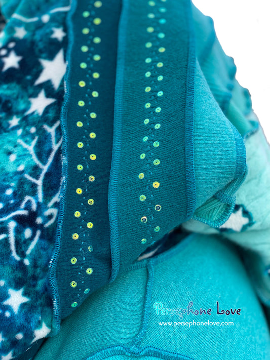 "New Sky" GODDESS SIZE Teal embroidered/felted cashmere Katwise-inspired patchwork sweatercoat-2523