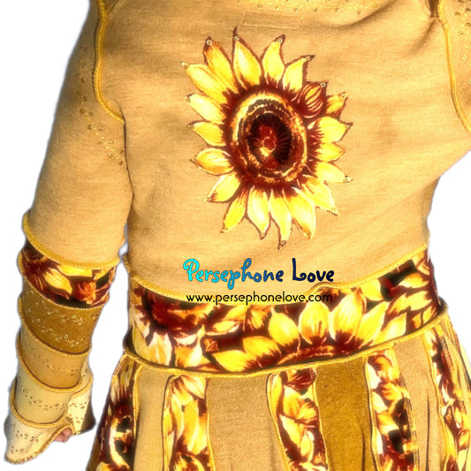 "Sunshine Cameo" Yellow sunflower needle-felted wool/cashmere Katwise-inspired patchwork elf sweatercoat-2517
