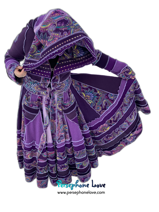 "Up All Night" Purple Paisley needle-felted wool/cashmere Katwise-inspired patchwork elf sweatercoat-2513