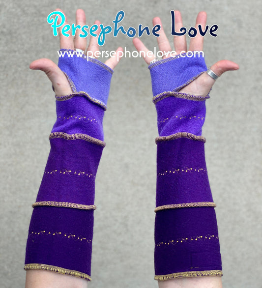 Katwise inspired needle-felted purple 100% cashmere embroidered upcycled sweater arm warmers-1408