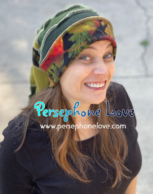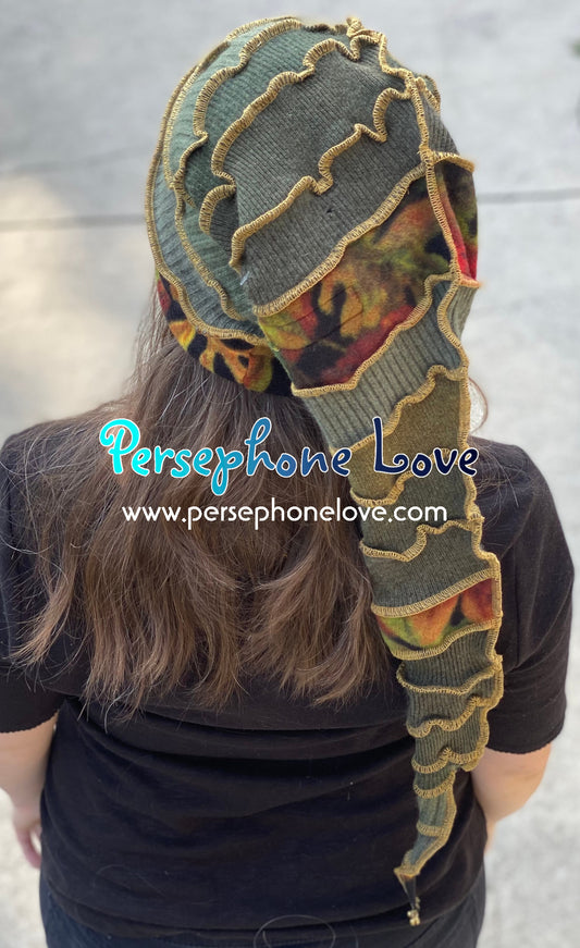 Katwise inspired green 100% cashmere/fleece patchwork elf jester hat-1480