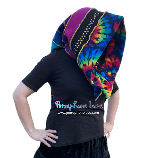Katwise inspired rainbow felted cashmere/wool recycled sweater elf hat/hood-1599